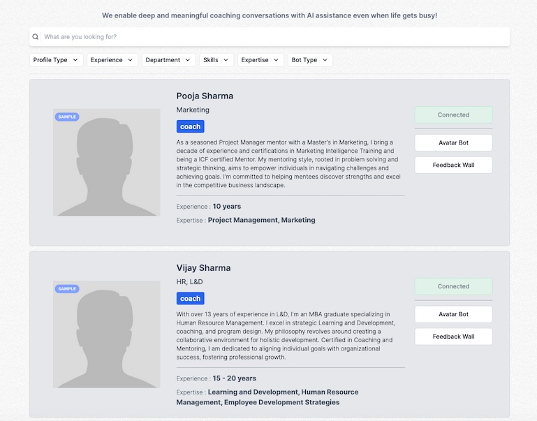 Our platform empowers internal leaders to take up coaching and mentoring. However we curate coaches and mentors who provide additional support when required.