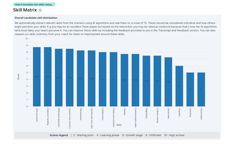 Ability to practice target skills with simulations over a period of time with Coach frames accountability leads to consistent skills improvement journey.